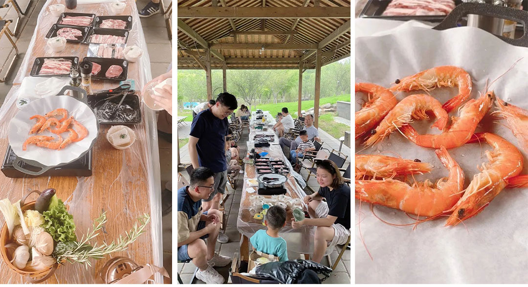 不知不觉中,西边的云朵上镶起了金线,相聚的时光总是如此短暂,本次烧烤团建在一阵阵欢声笑语中落下帷幕。